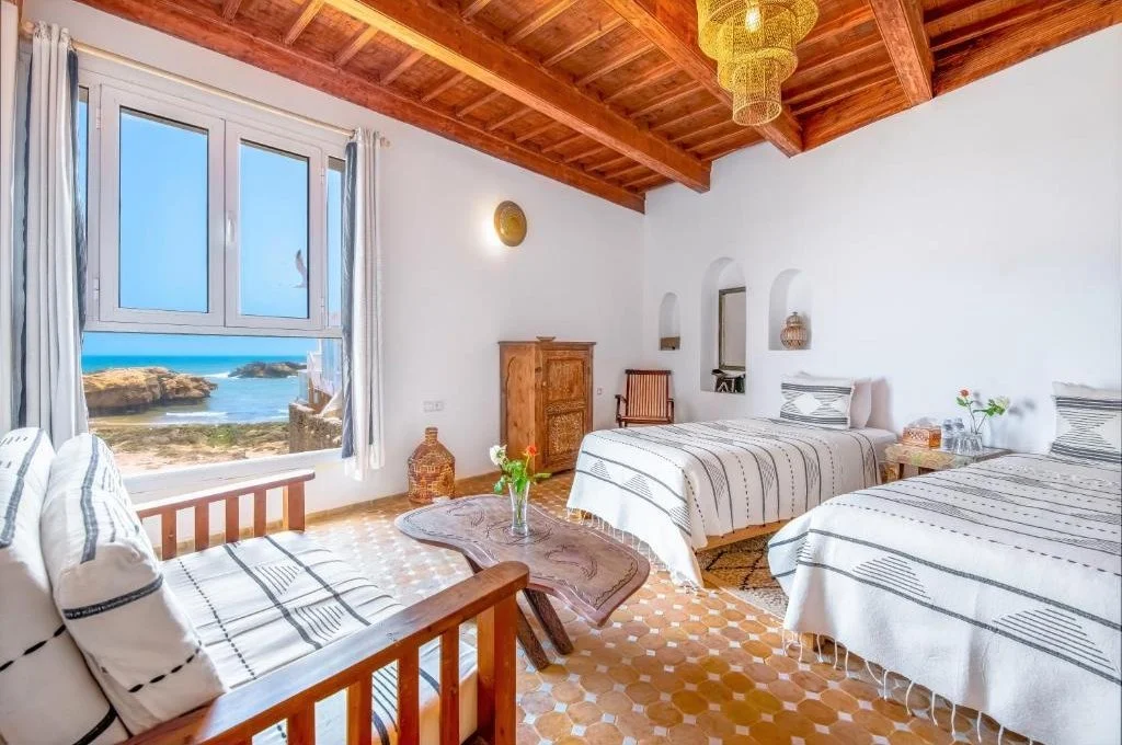 Built in traditional style, the riad is simple and welcoming, with a cosy courtyard and a rooftop terrace overlooking the rooftops of the medina and the Atlantic beyond. The rooms are modest but comfortable, combining local craftsmanship with practical amenities.